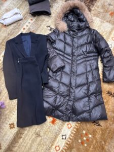 婦人用黒ダウンコート(Theory, XS)、子供用リバーシブルダウンジャケット(