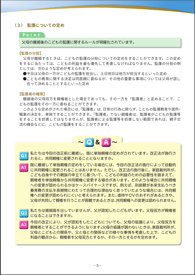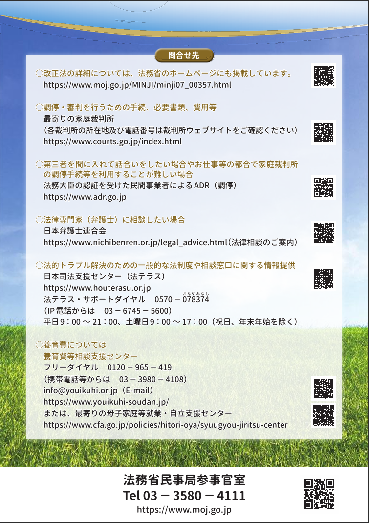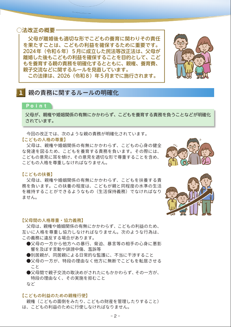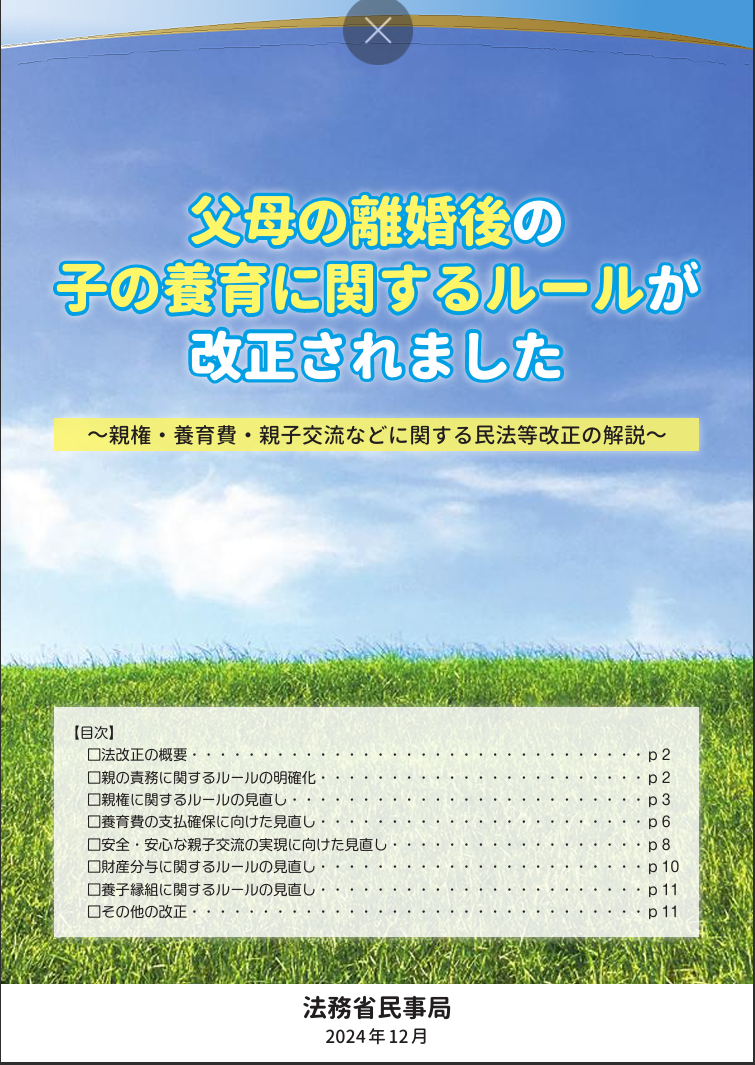 法務省:民法等の一部を改正する法律(父母の離婚後等の子の養育に関する見直し)について〔令和8年4月1日施行〕