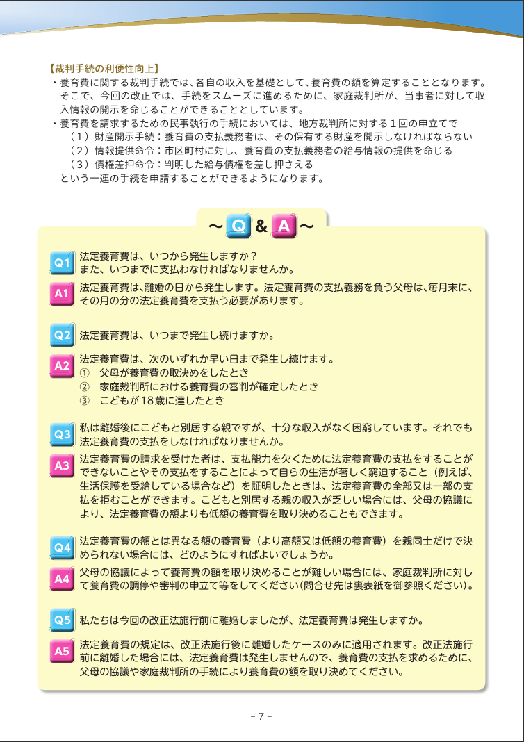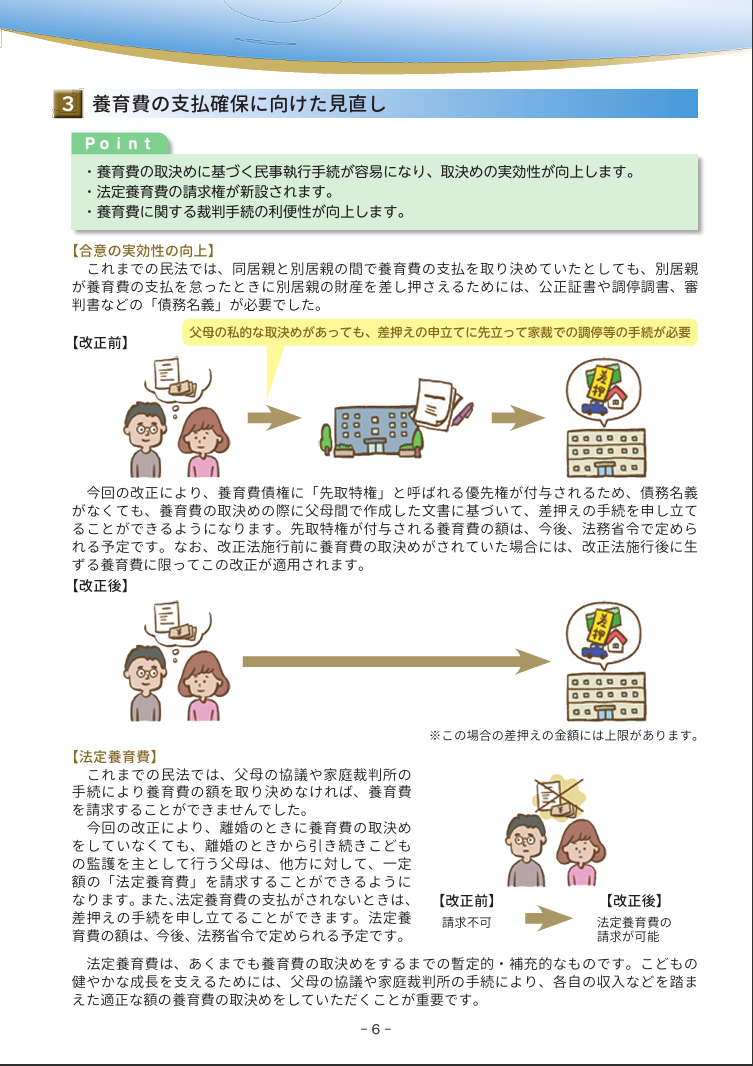 また、もし相手が養育費を払わない場合は、その人の財産を優先的に差し押さえて、お金を確実に受け取れるようにする手続きが使いやすくなりました。