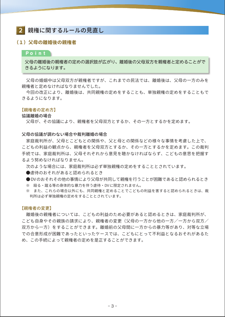 親権に関するルールの見直し